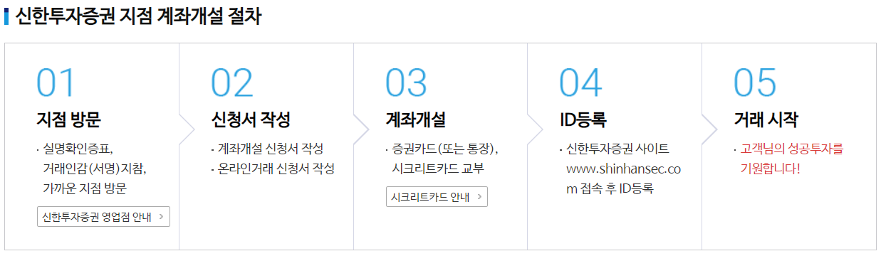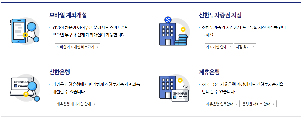 신한투자증권 지점방문 계좌개설은 신분증과 도장 (요즘은 서명으로도 됩니다)을 가지고 가까운 지점에 방문하시면 됩니다. 아래 지점방문 계좌개설 안내 페이지 링크와 지점찾기 페이지 링크 연결해 두었습니다.