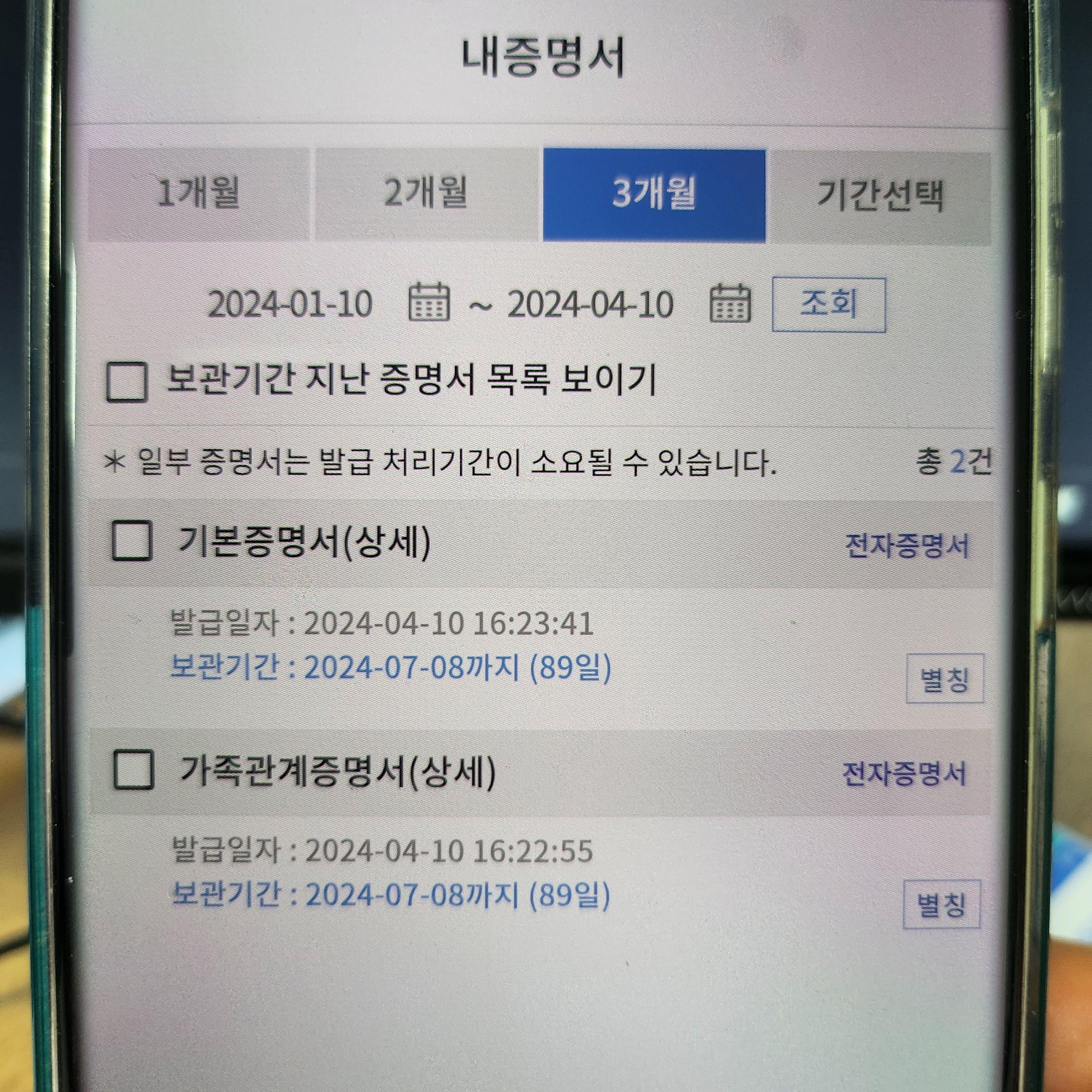 요즘은 가족관계증명서, 주민등록등본, 주민등록초본, 기본증명서 등을 전자문서로 발급받을 수 있습니다.