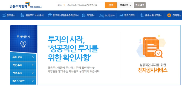 2. 금융투자협회 전자공시서비스 홈페이지 링크입니다.