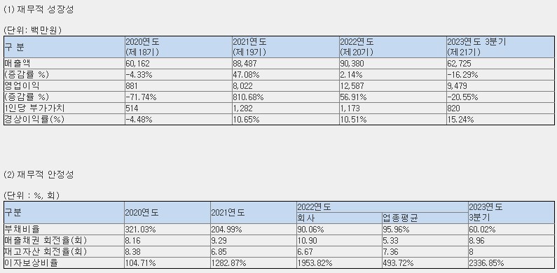 영업이익은 2022년까지 증가했다가 2023년 다시 하락하였습니다.