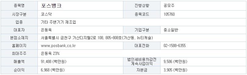 1월 공모주 포스뱅크 공모주 청약 일정 및 기업정보